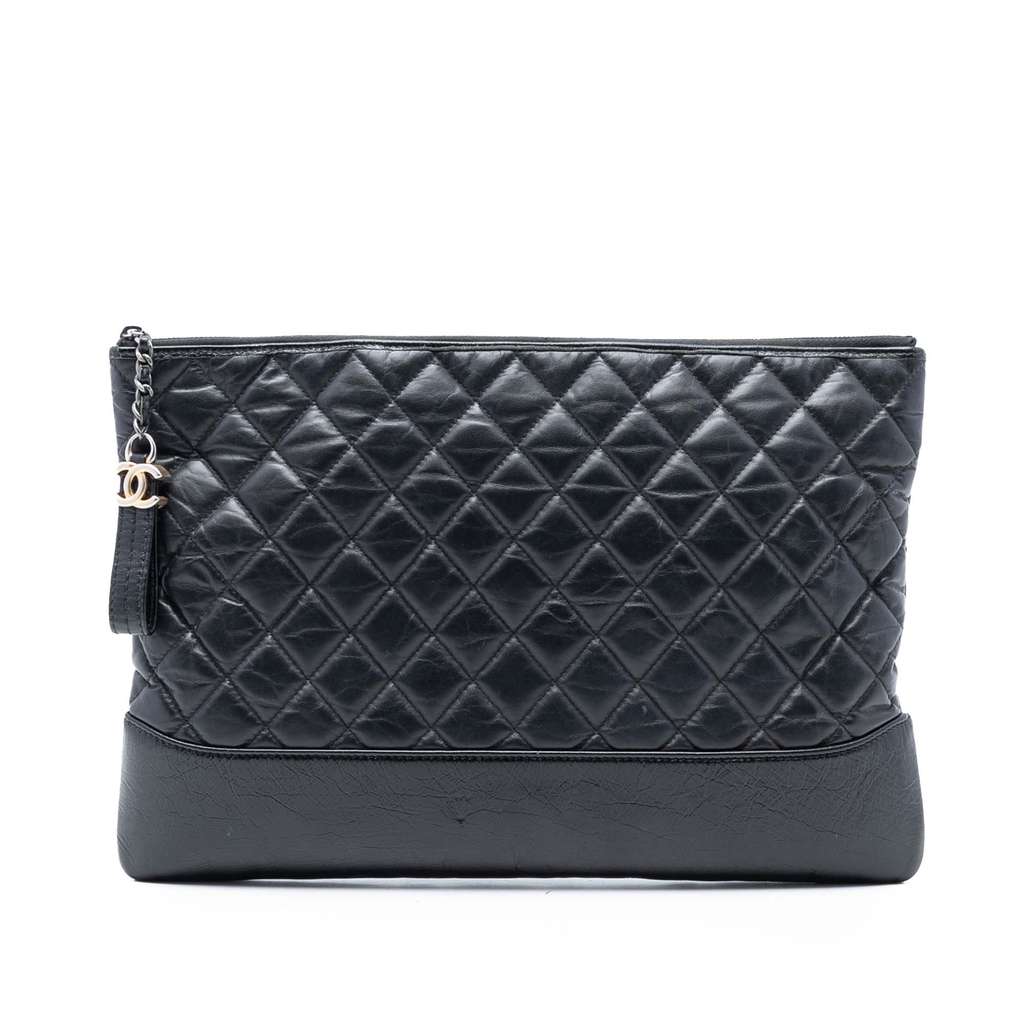 Chanel Large Aged Calfskin Gabrielle O Case Clutch Black X-L