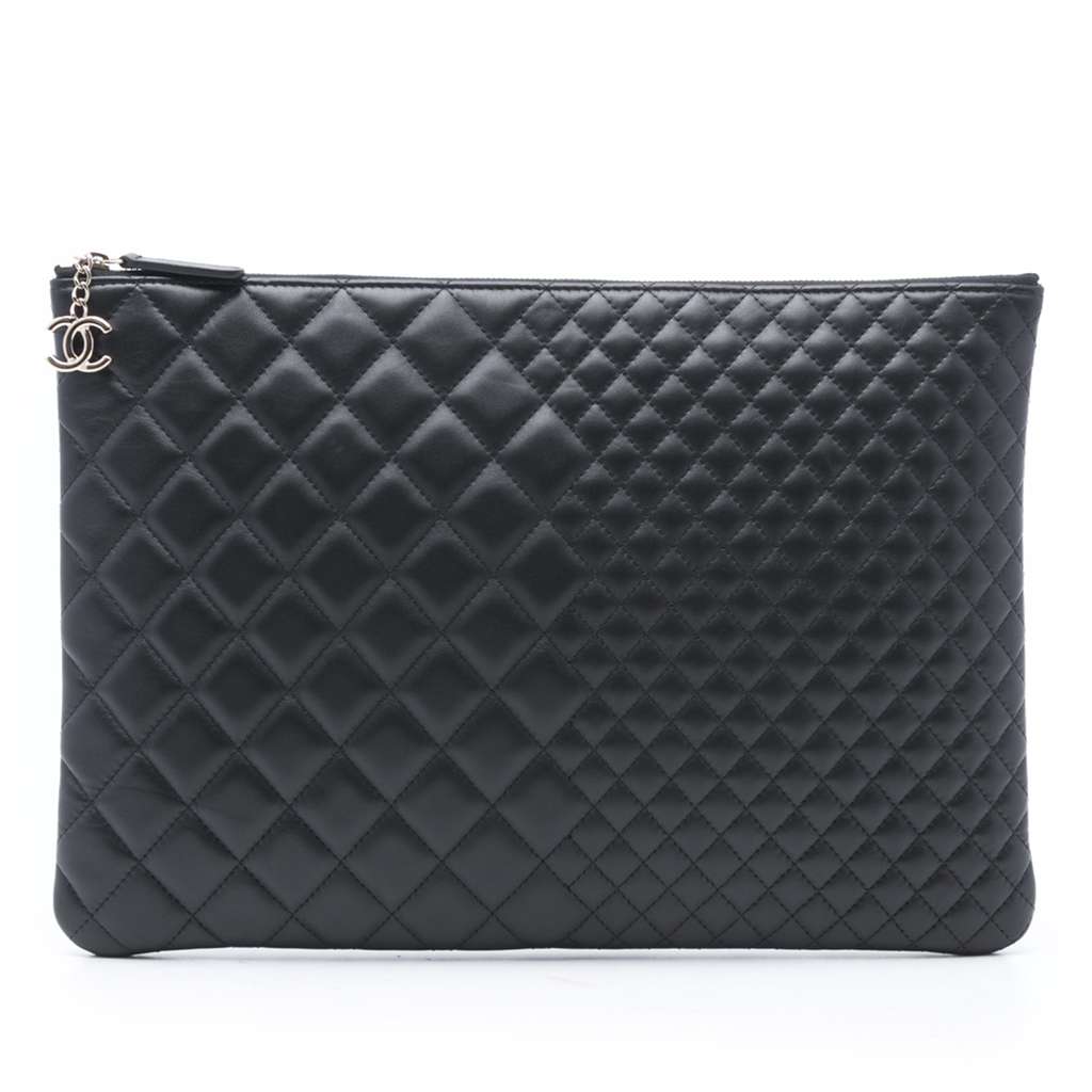 Chanel Large Bi Quilted Lambskin O Case Clutch Black Large L