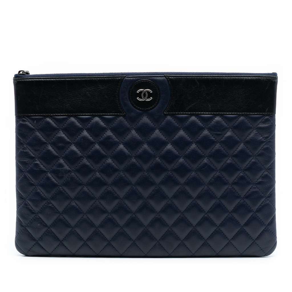 This clutch bag features a quilted leather body, and a top zip closure.