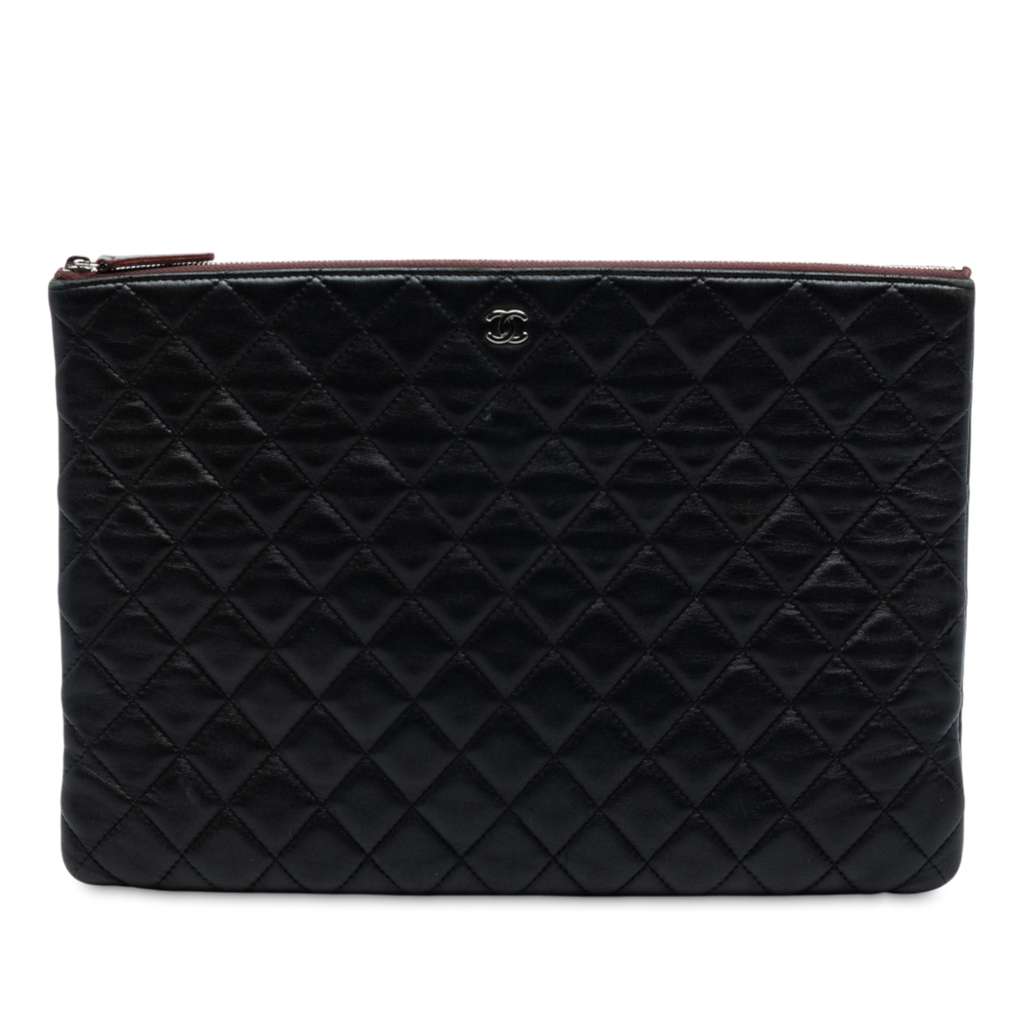 This clutch bag features a quilted lambskin leather body and a top zip closure.
