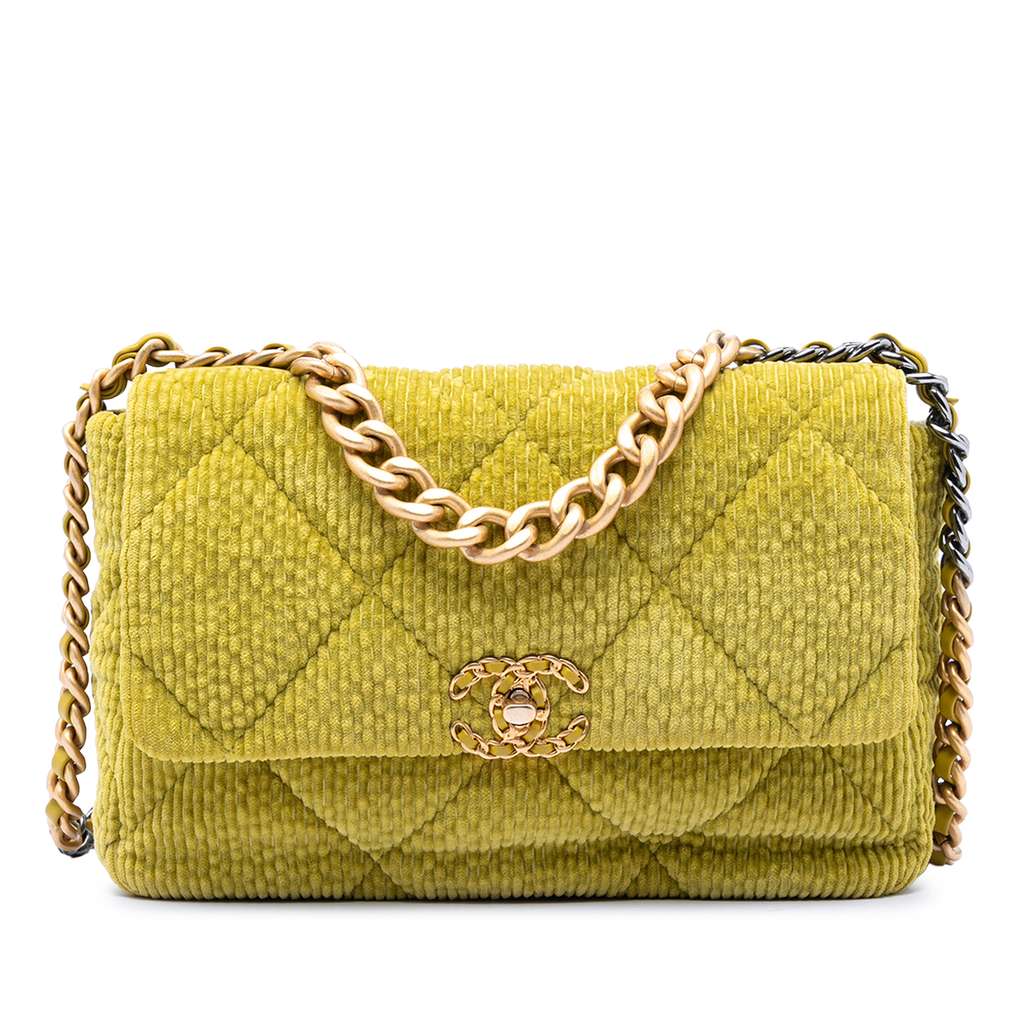 Chanel Large Corduroy 19 Flap Green Large Velvet | Pre-Loved