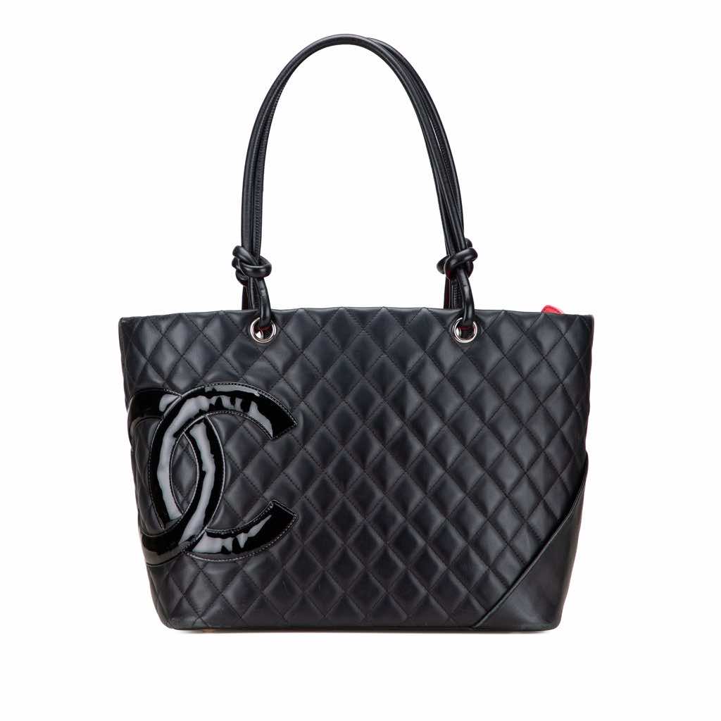 The Cambon Ligne tote features a quilted leather body, rolled leather handles with knot detail, a top zip closure, an exterior back slip compartment, and interior zip and slip pockets.