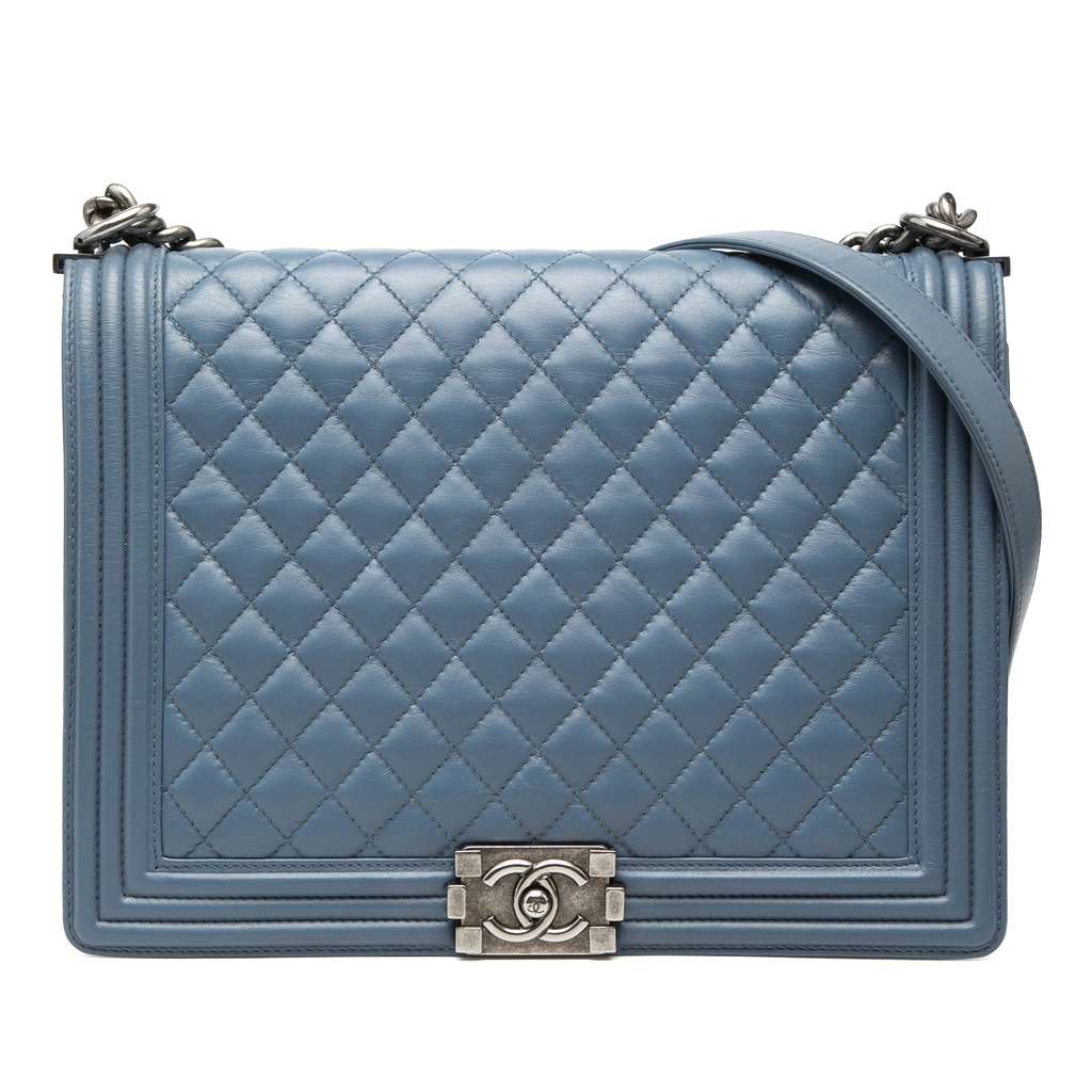 Chanel Large Quilted Lambskin Boy Flap Blue Large Leather