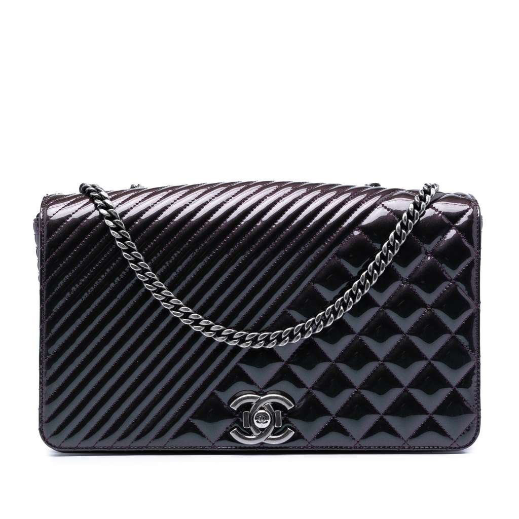 Chanel Large Quilted Patent Coco Boy Flap Purple Large Leath