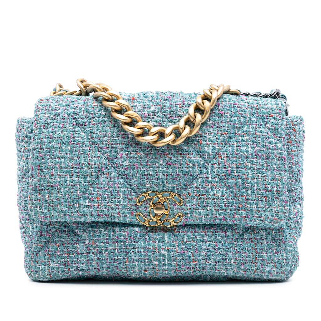 Chanel Large Tweed 19 Flap Blue Medium Tweed | Pre-Loved Lux