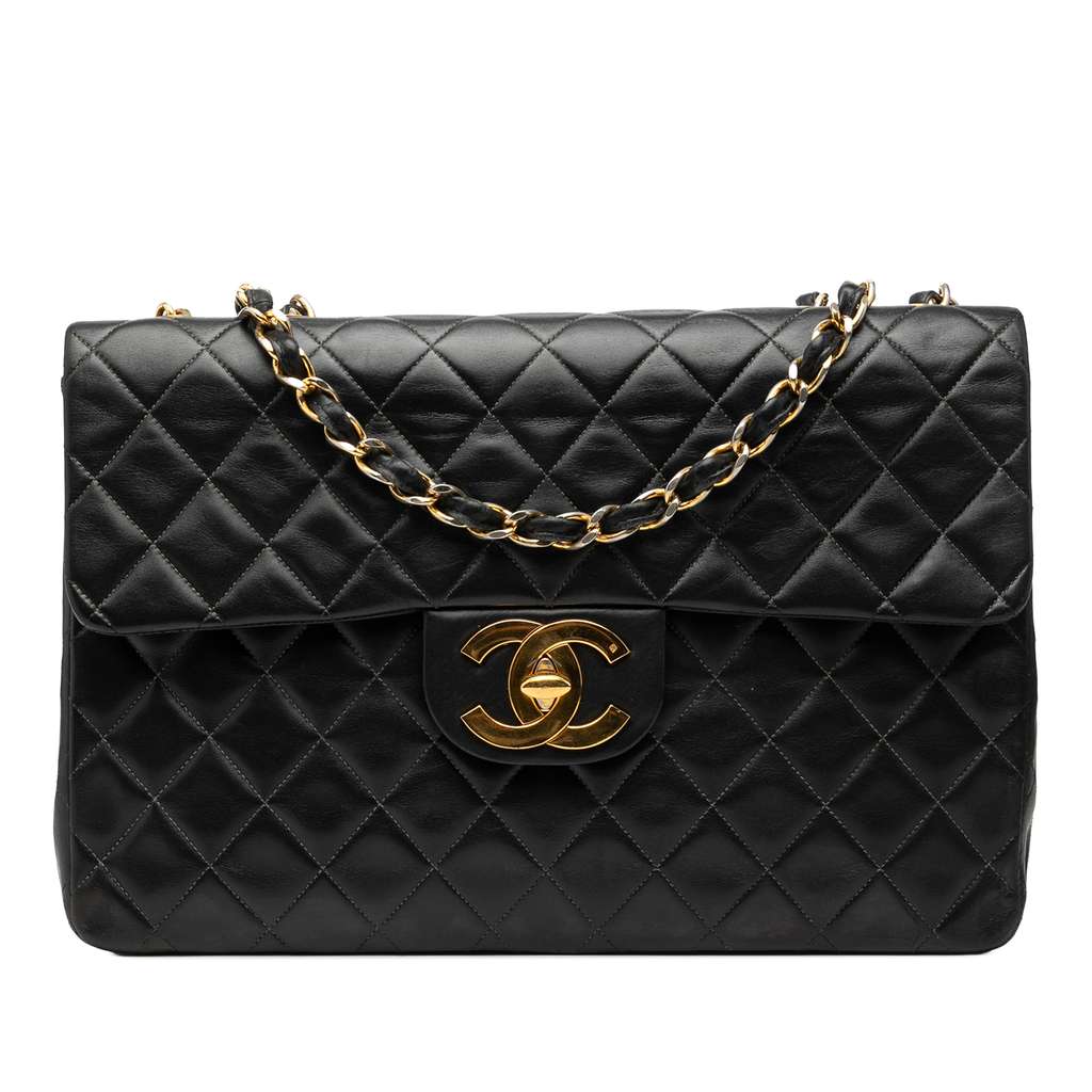 Chanel Maxi XL Classic Lambskin Single Flap Black Large Leat
