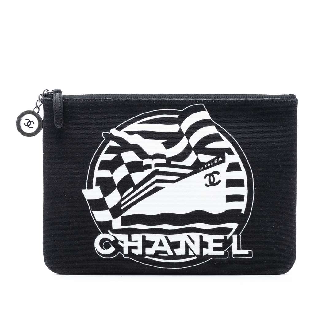 Chanel Medium Canvas La Pausa Zip O Case Clutch Black Medium