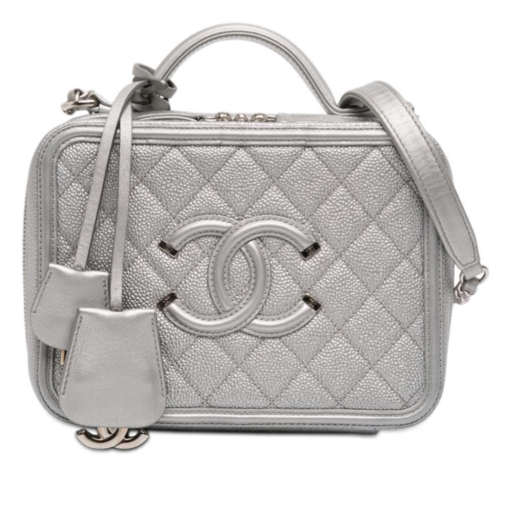 Chanel Medium Caviar CC Filigree Vanity Case Silver Small Le