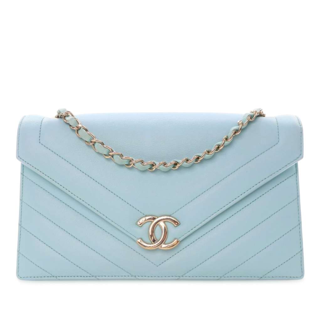 This crossbody bag features a calfskin leather body, leather woven chain link strap, a front flap with snap button closure, and interior zip and slip pockets.