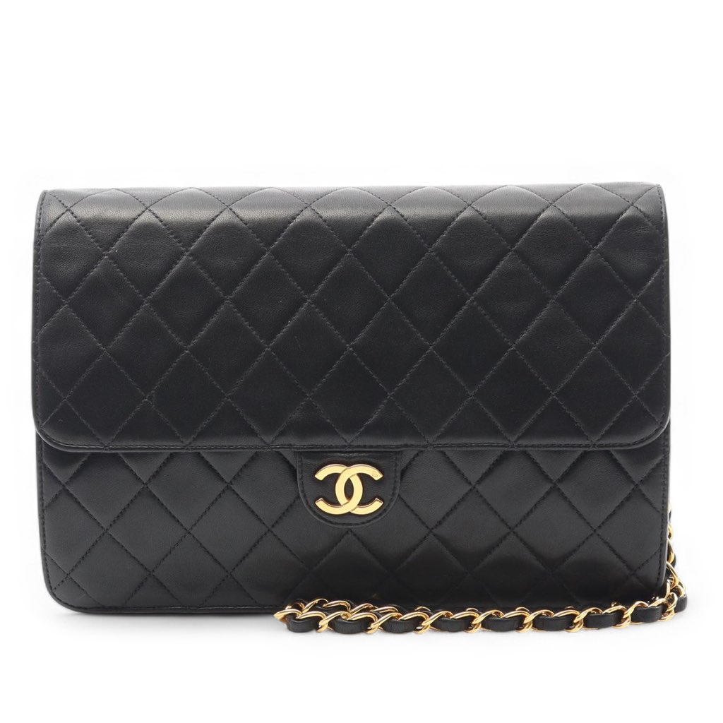 This crossbody bag features a quilted lambskin leather body, a leather woven chain strap, a front flap with CC turn lock closure, and interior zip pocket and slip pockets.