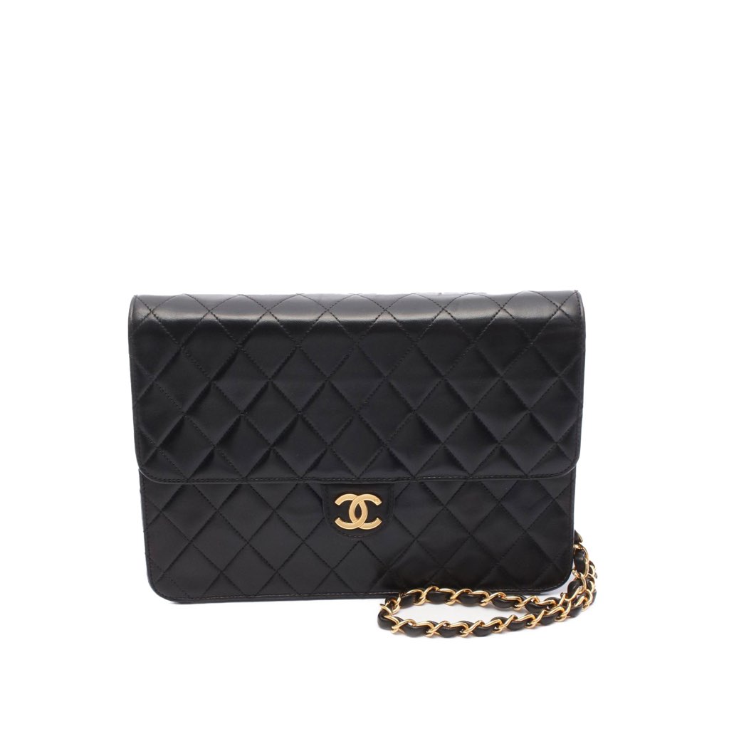 This crossbody bag features a quilted lambskin leather body, a leather woven chain strap, a front flap with CC turn lock closure, and interior zip pocket and slip pockets.
