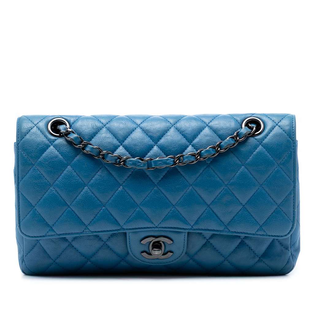 Chanel Medium Classic Calfskin Double Flap Blue Medium Leath