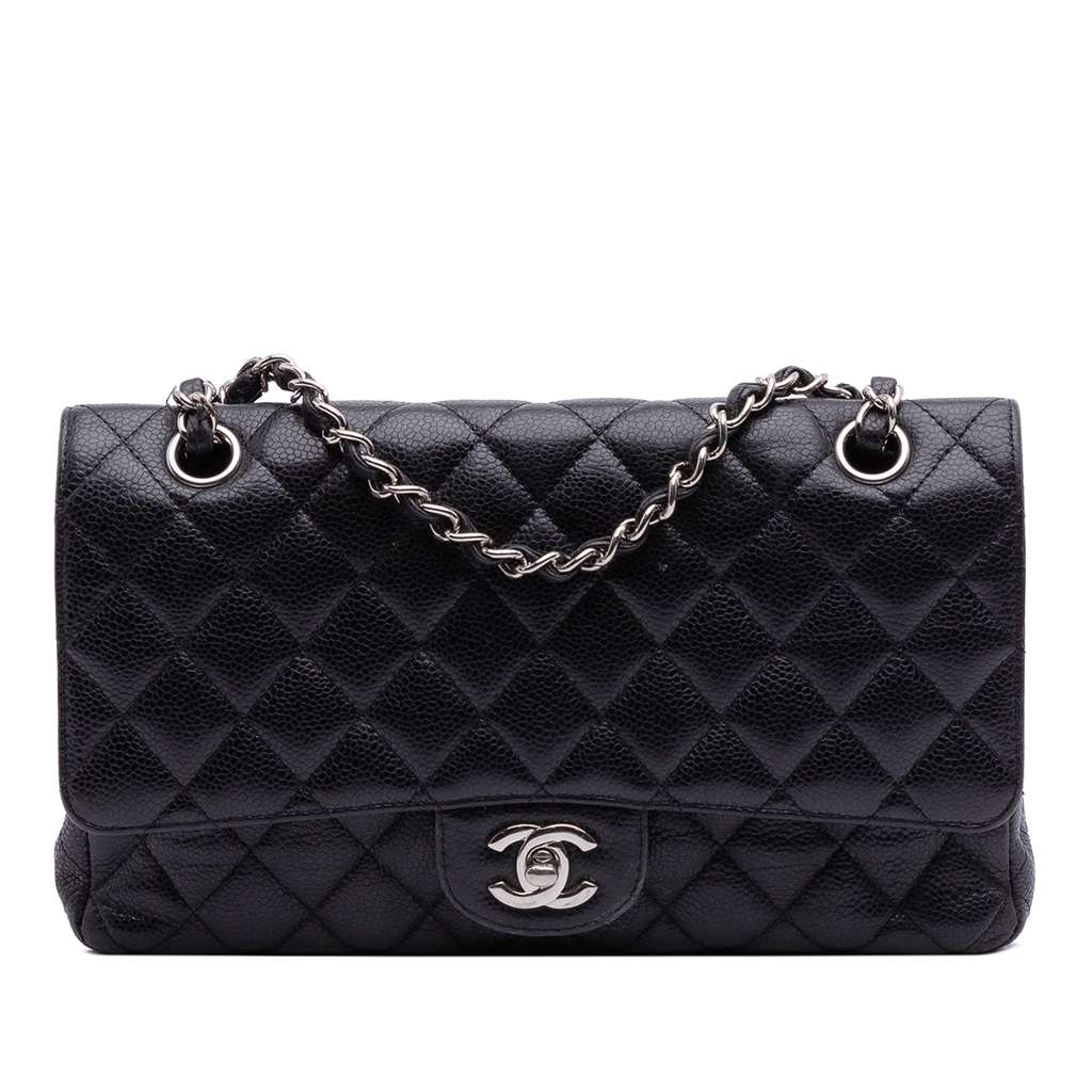 Chanel Medium Classic Caviar Double Flap Black Medium Leathe