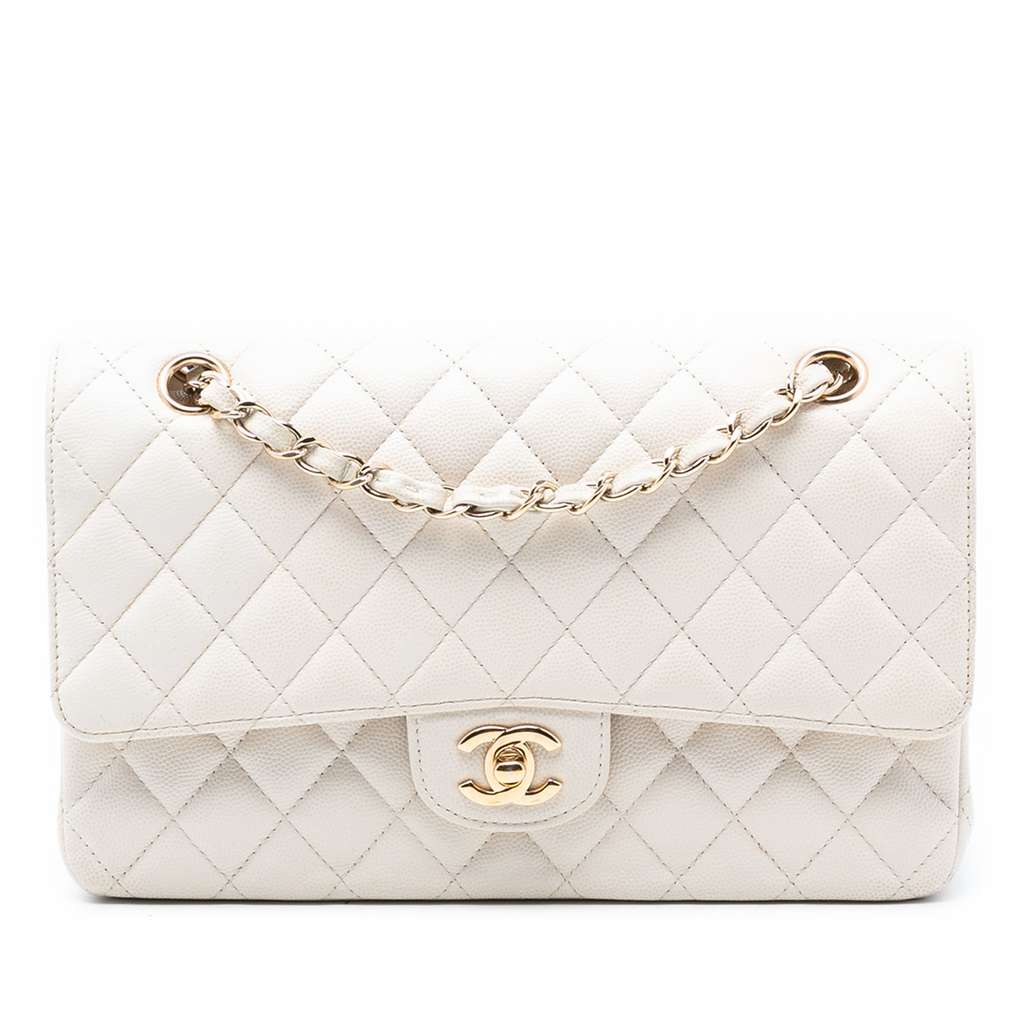 Chanel Medium Classic Caviar Double Flap White Medium Leathe