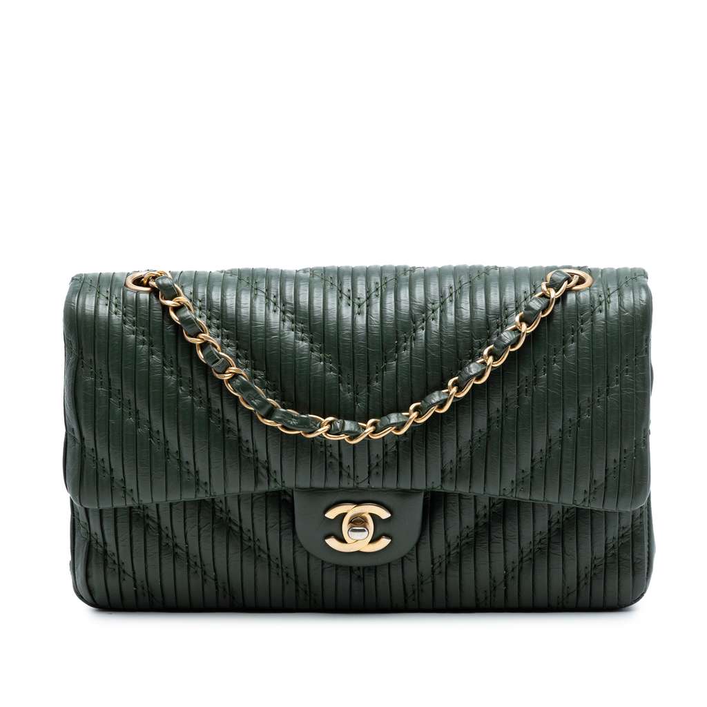 Chanel Medium Classic Chevron Calfskin Pleated Double Flap G