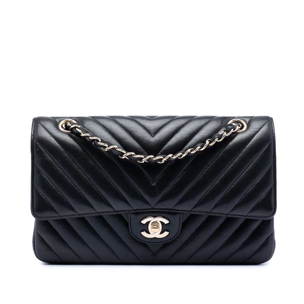 Chanel Medium Classic Chevron Lambskin Double Flap Black Med