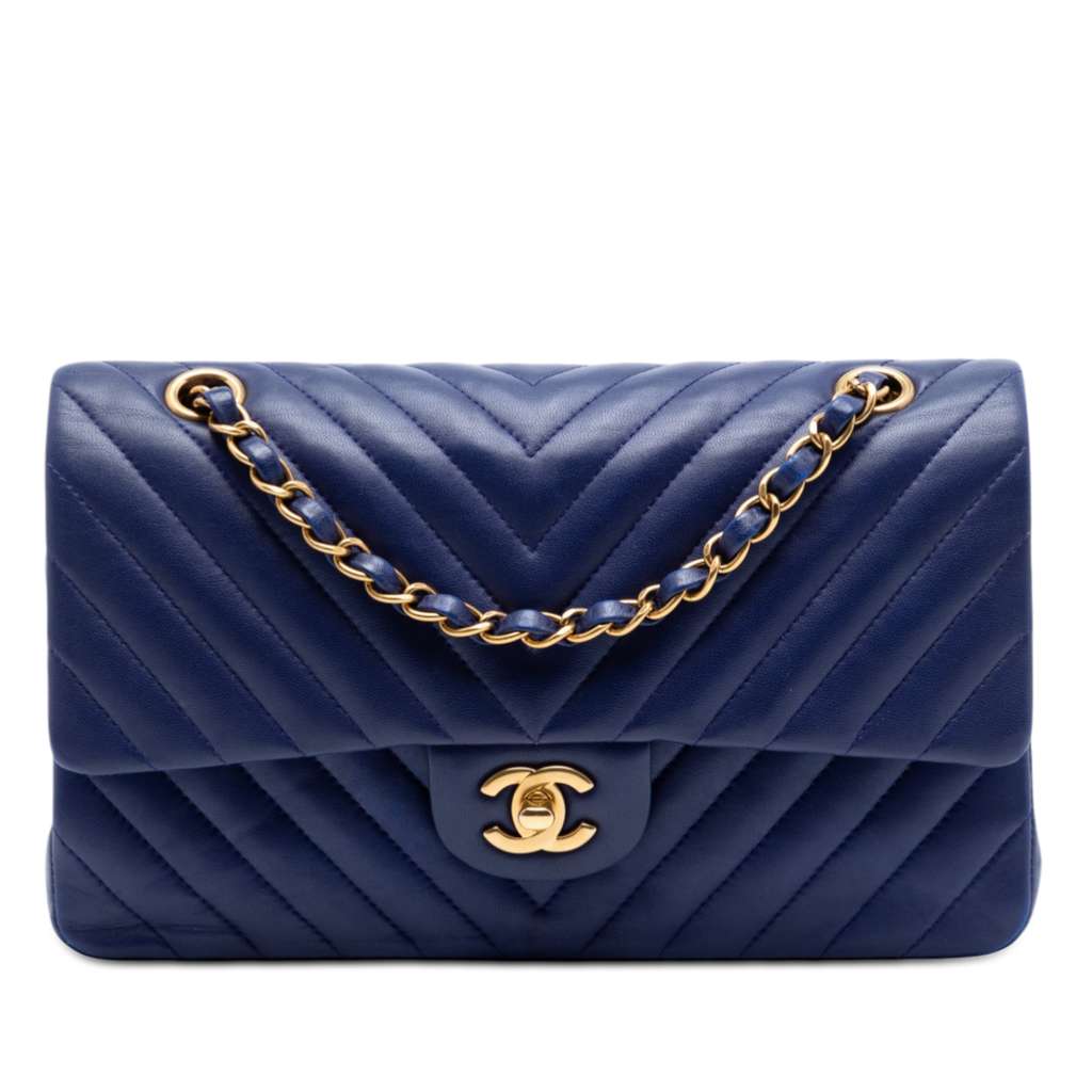 Chanel Medium Classic Chevron Lambskin Double Flap Blue Medi