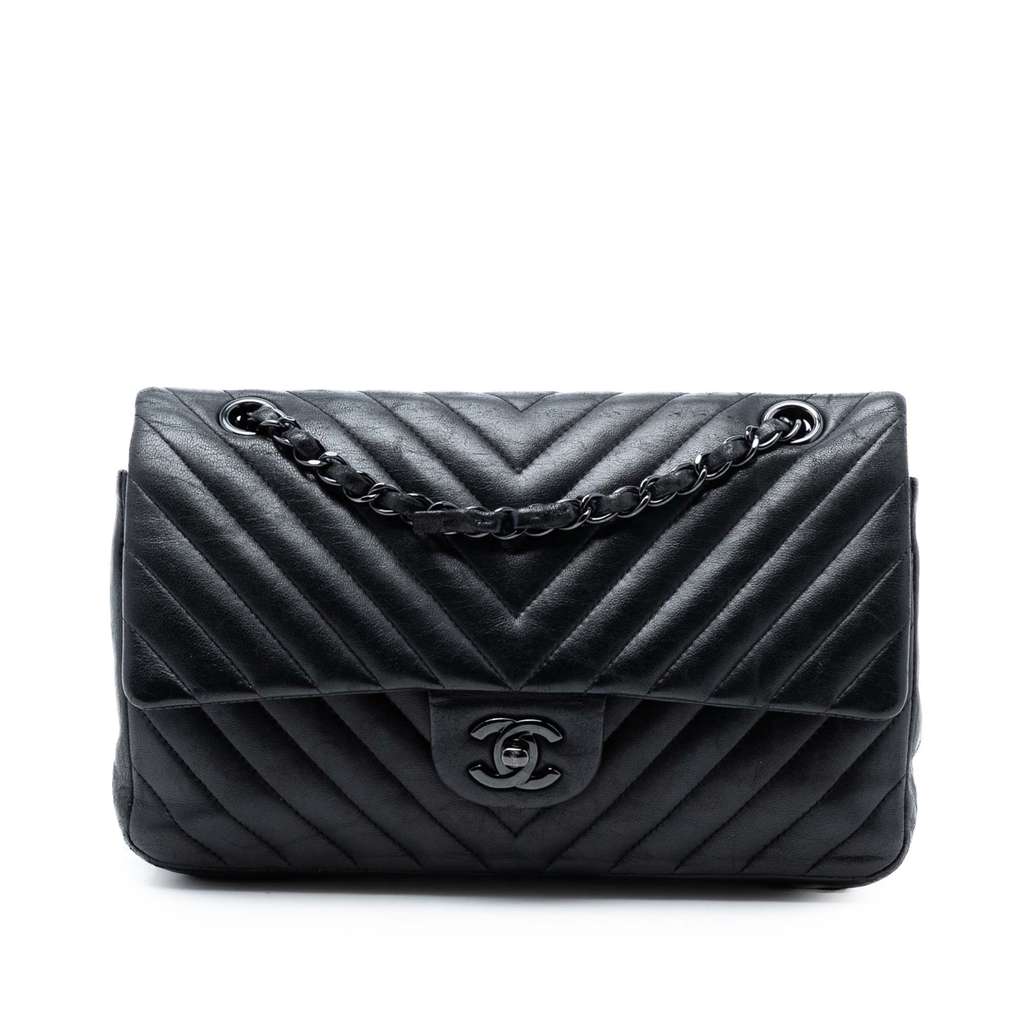 Chanel Medium Classic Chevron Lambskin So Black Double Flap