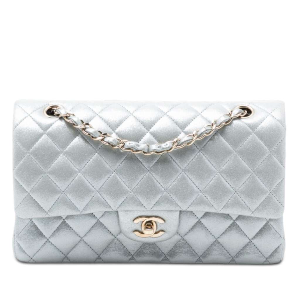 Chanel Medium Classic Iridescent Lambskin Double Flap Silver