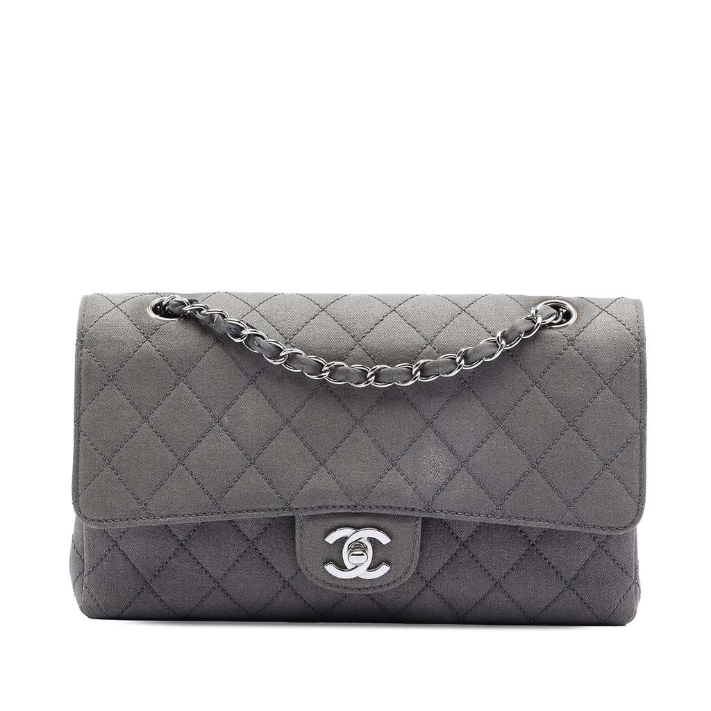 Chanel Medium Classic Suede Double Flap Grey Medium Leather