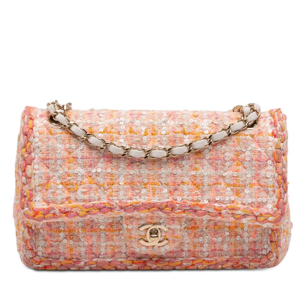 Chanel Medium Classic Tweed Sequin Braided Double Flap Orang