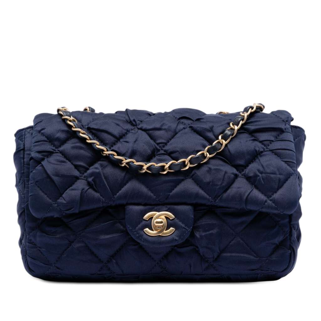 Chanel Medium Crumpled Satin Single Flap Blue Medium Satin