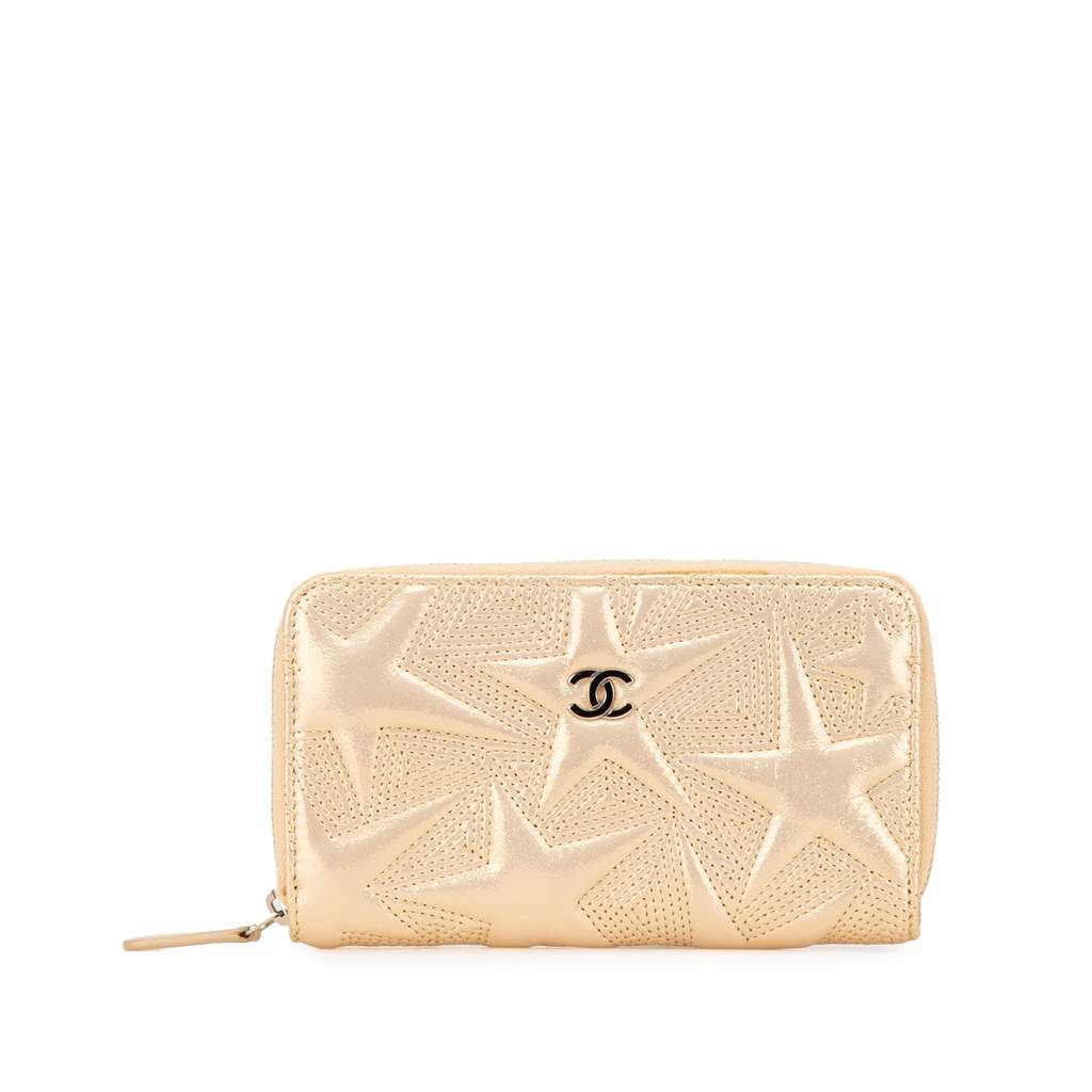Chanel Medium Metallic Lambskin Star Embossed Zip Around Wal