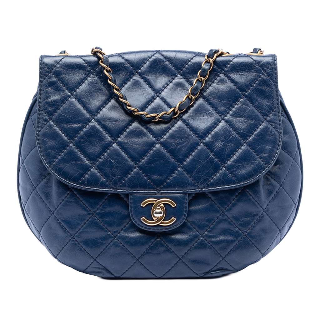 Chanel Medium Quilted Aged Calfskin Bubble CC Flap Blue Smal