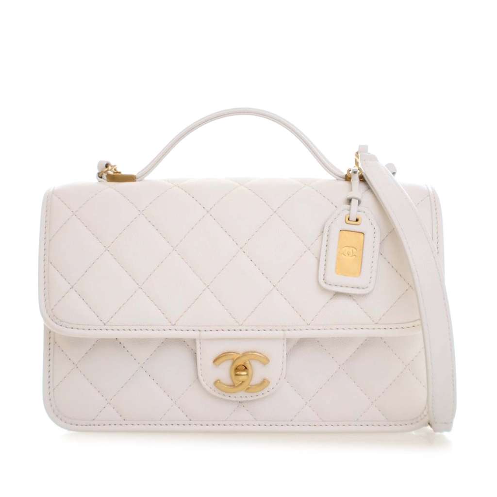 Chanel Medium Quilted Caviar School Memory Top Handle Flap W