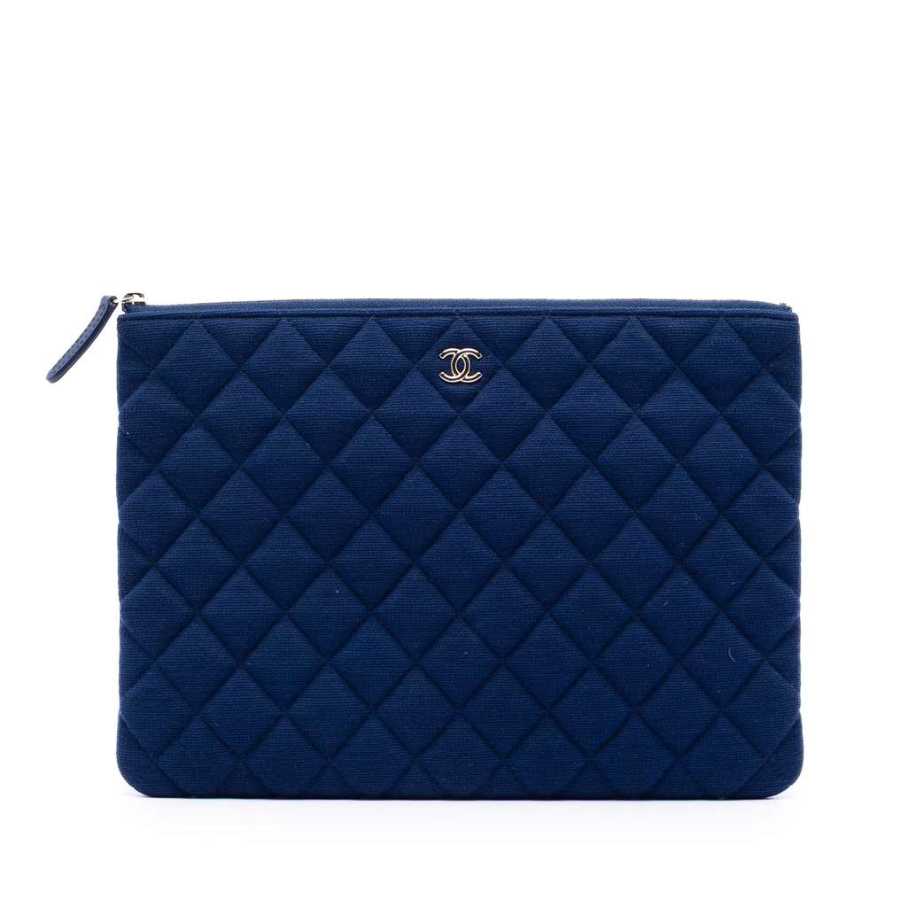 Chanel Medium Quilted Jersey O Case Clutch Blue Medium Cotto