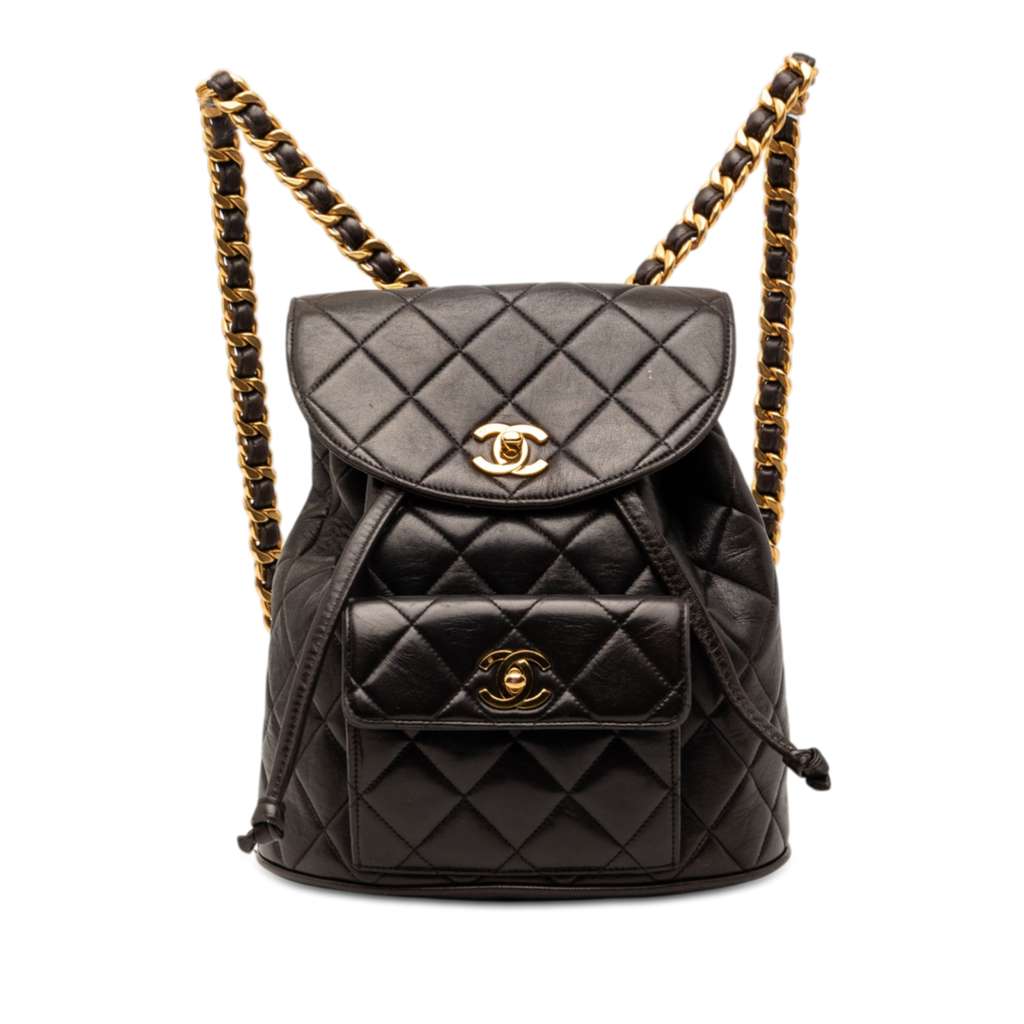 Chanel Medium Quilted Lambskin Duma Backpack Black Small Lea