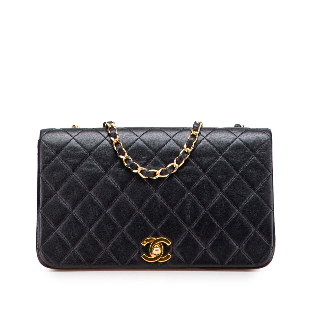 This crossbody bag features a quilted lambskin leather body, a leather woven chain strap, a front flap with CC turn-lock closure, and an interior zip pocket.