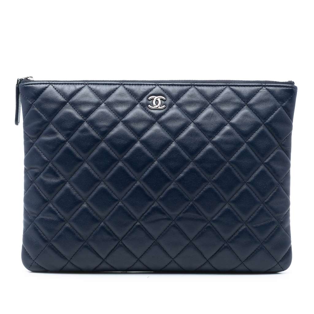 Chanel Medium Quilted Lambskin O Case Clutch Blue Medium Lea