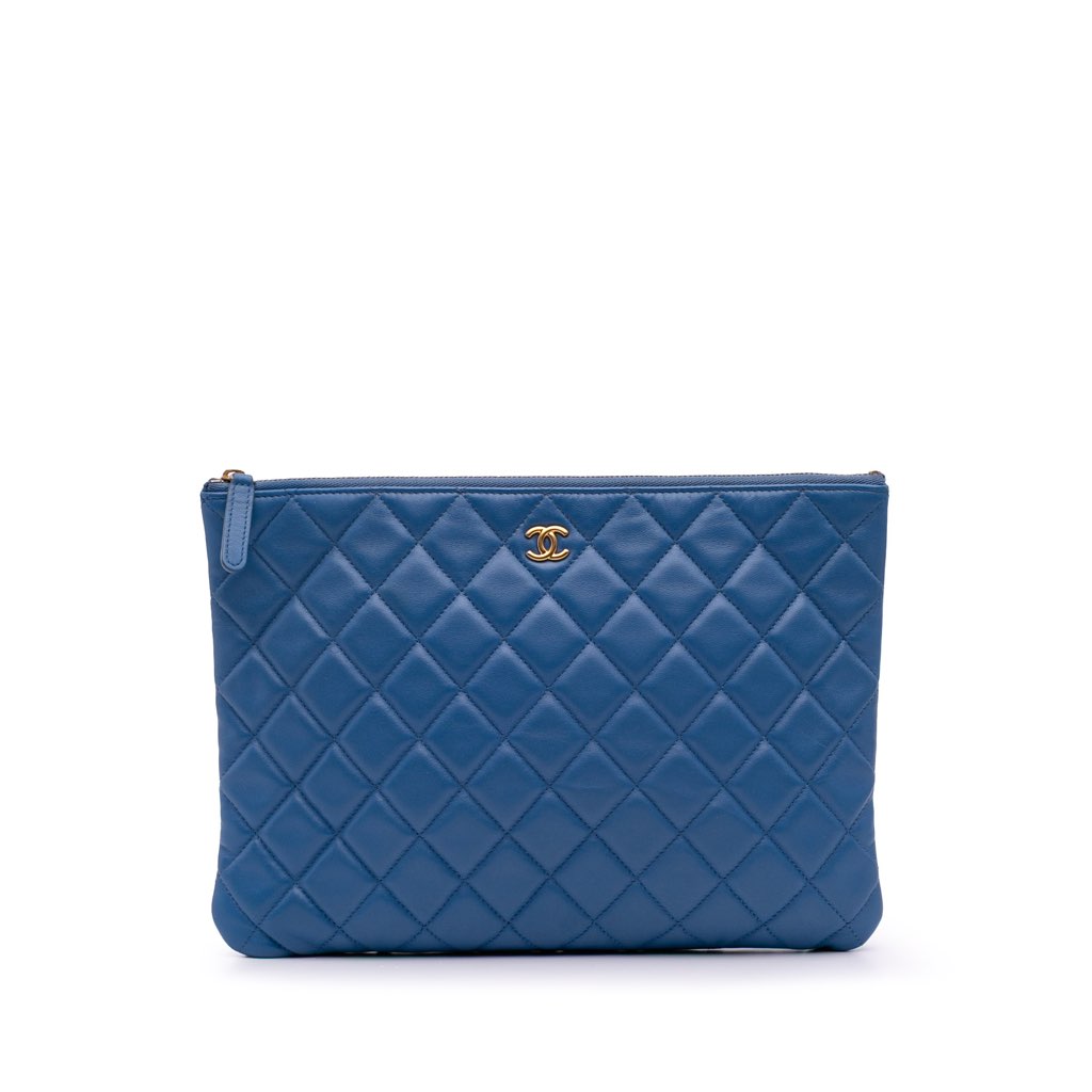This clutch bag features a quilted lambskin leather body and a top zip closure.
