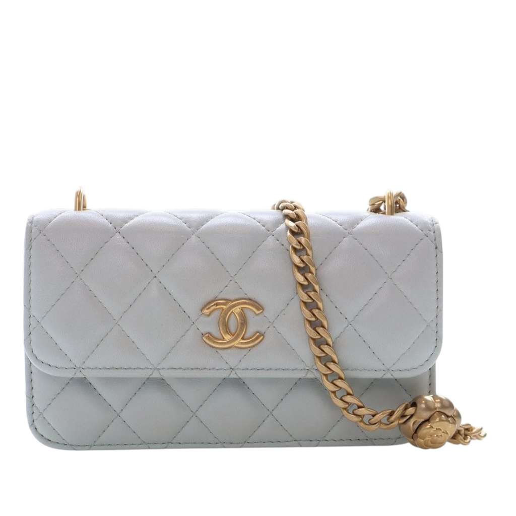 Chanel Mini CC Lambskin Camellia Crush Clutch With Chain Blu