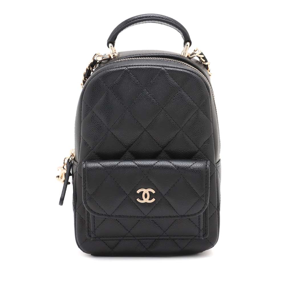 Chanel Mini CC Quilted Caviar Backpack Black Mini Leather
