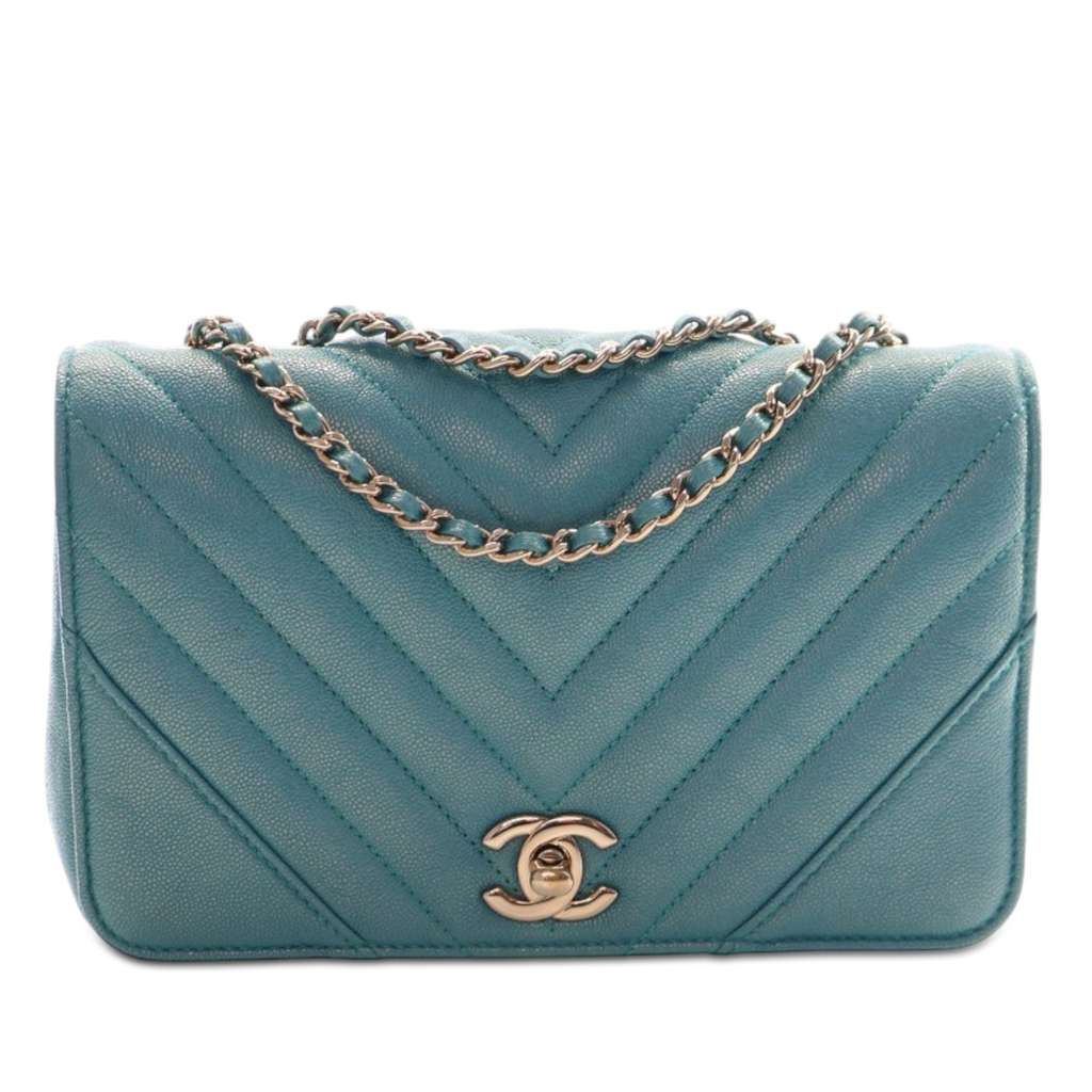 Chanel Mini Chevron Caviar Statement Flap Blue Small Leather