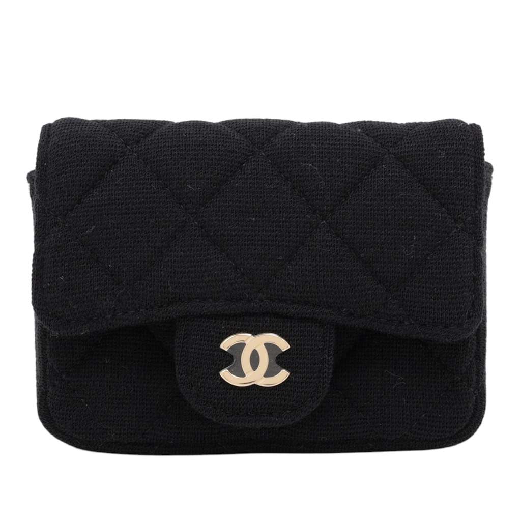 Chanel Mini Classic Jersey Flap Belt Bag Black Mini Cotton