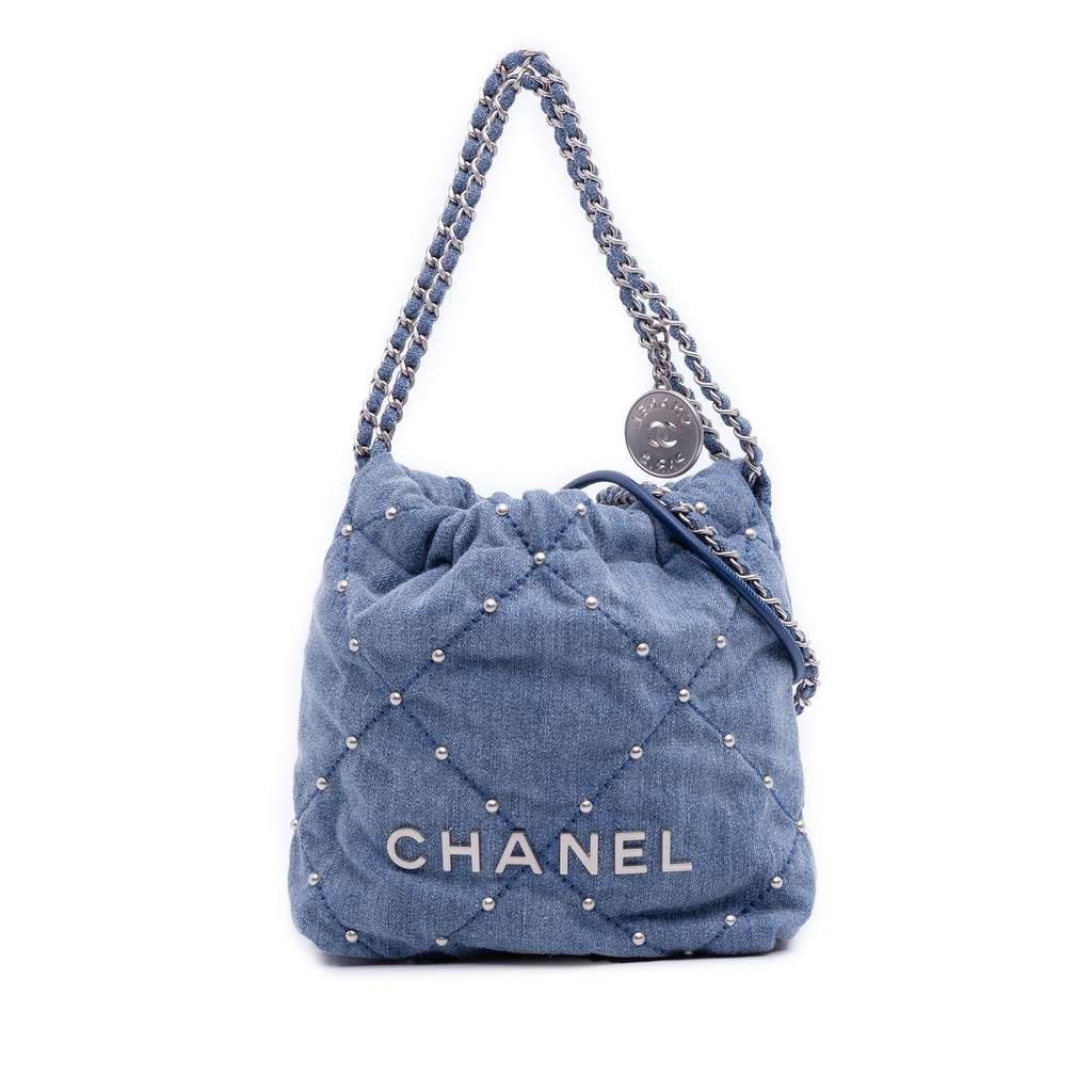 Chanel Mini Denim Studded 22 Handbag Blue Mini Denim