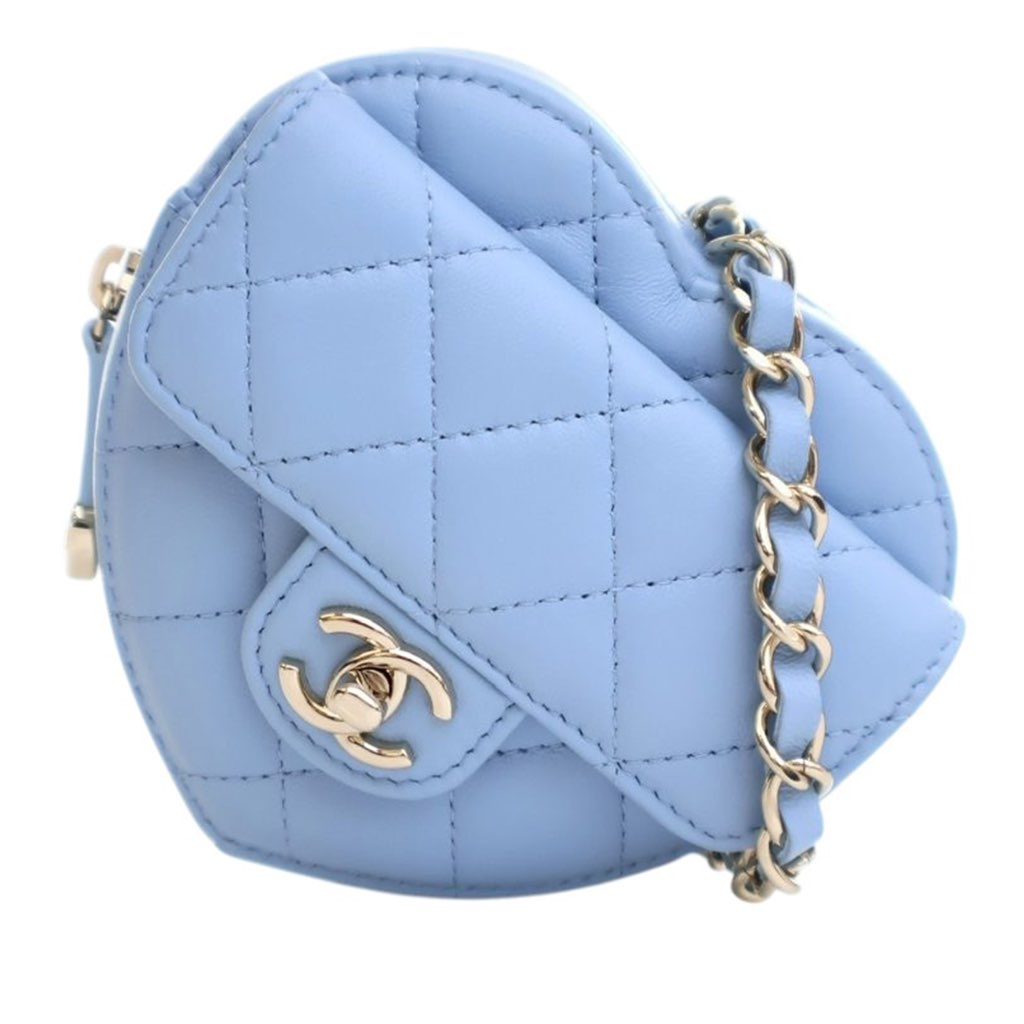 Chanel Mini Lambskin CC in Love Heart Belt Bag Blue Mini Lea