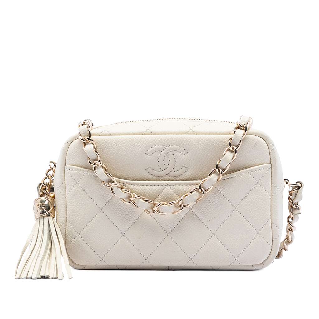 Chanel Mini Quilted Caviar Coco Tassel Camera Case White Min