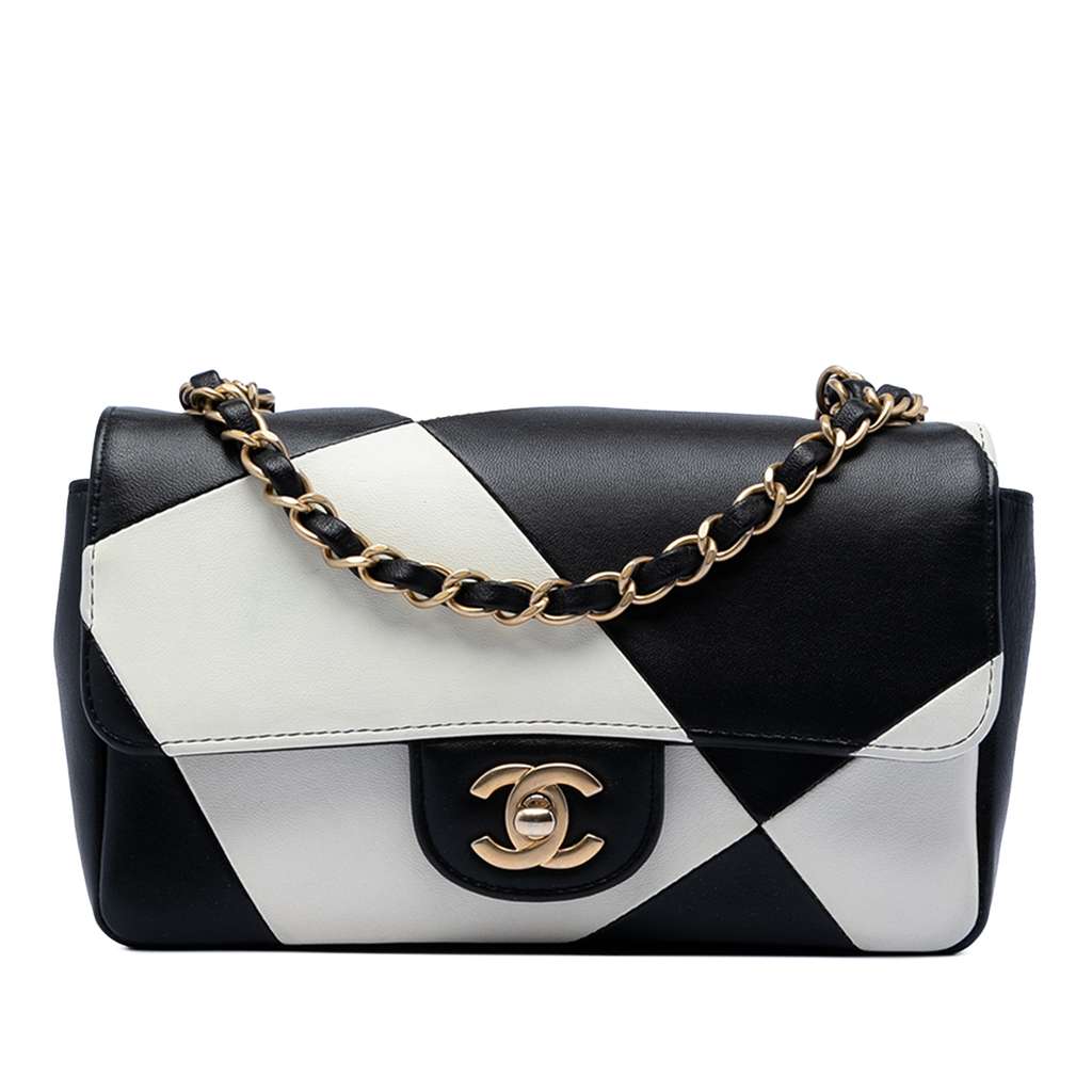 Mini Rectangular Classic Bicolor Quilted Lambskin Geometric Patchwork Single Flap