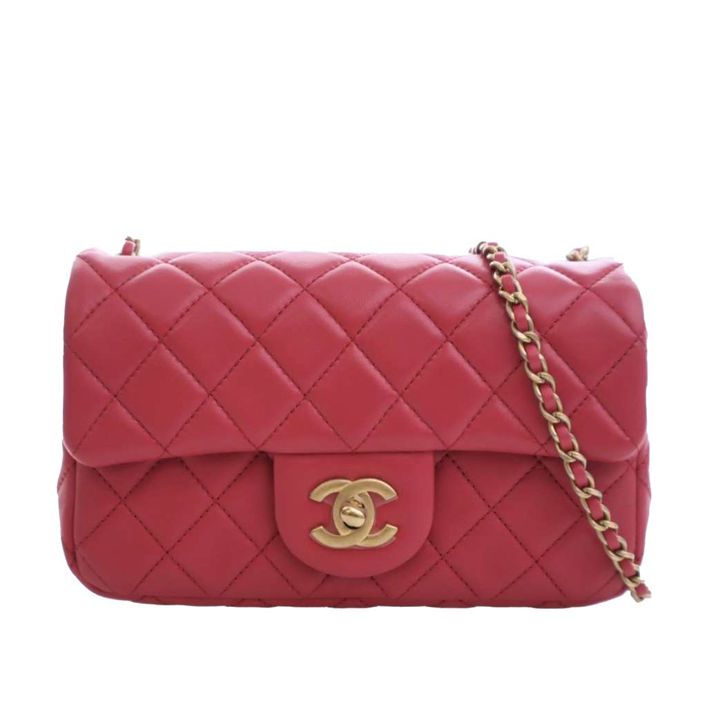 This crossbody bag features a quilted lambskin leather body, a leather woven chain shoulder strap with ball detail, a front flap with CC turn-lock closure, an exterior back slip pocket, and interior zip and slip pockets.