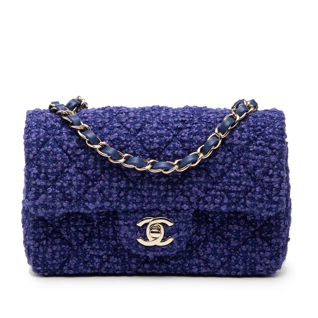 Chanel Mini Rectangular Classic Tweed Single Flap Blue Small
