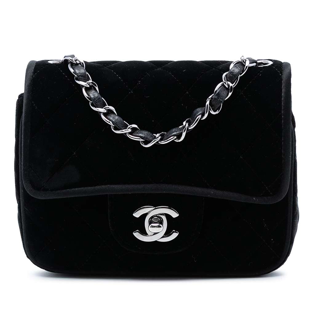 Chanel Mini Square Classic Velvet Single Flap Black Mini Vel