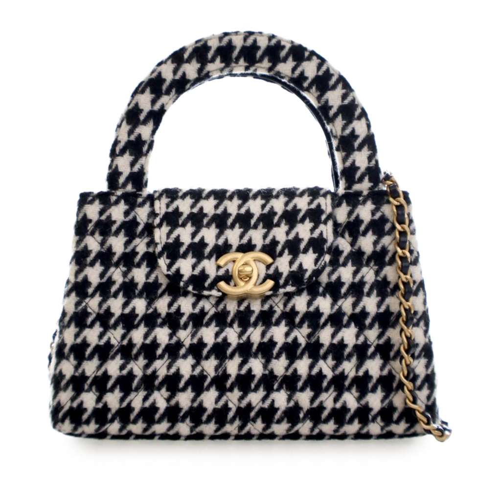 Chanel Nano Quilted Houndstooth Tweed Kelly Shopper Bag Blac