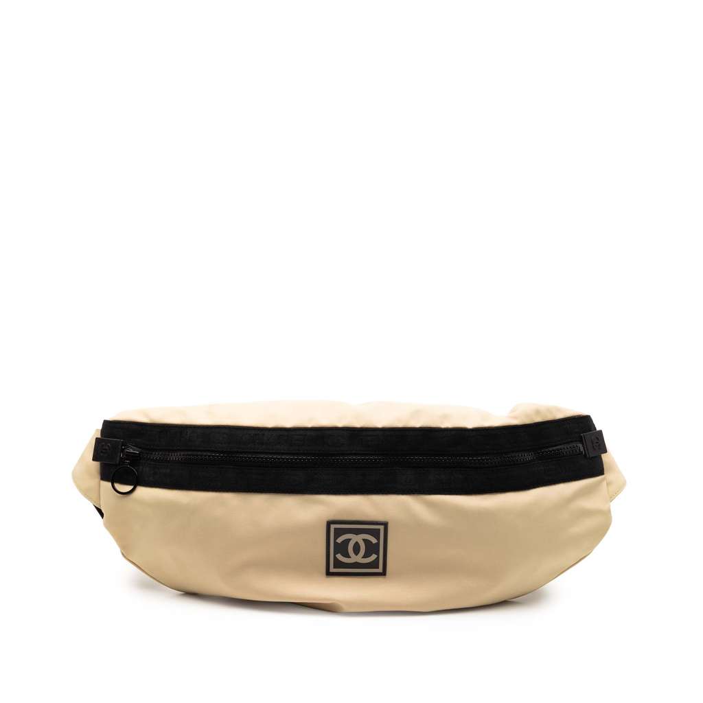 This belt bag features a nylon body, an adjustable flat waist strap, a top zip closure, and an interior zip pocket.