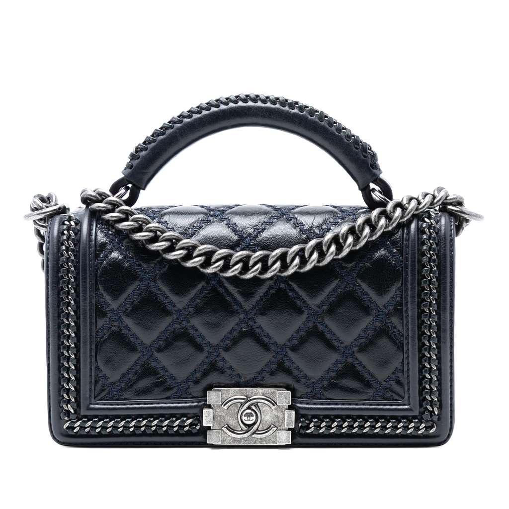Old Medium Quilted Calfskin Whipstitch Chain Around Boy Top Handle Flap