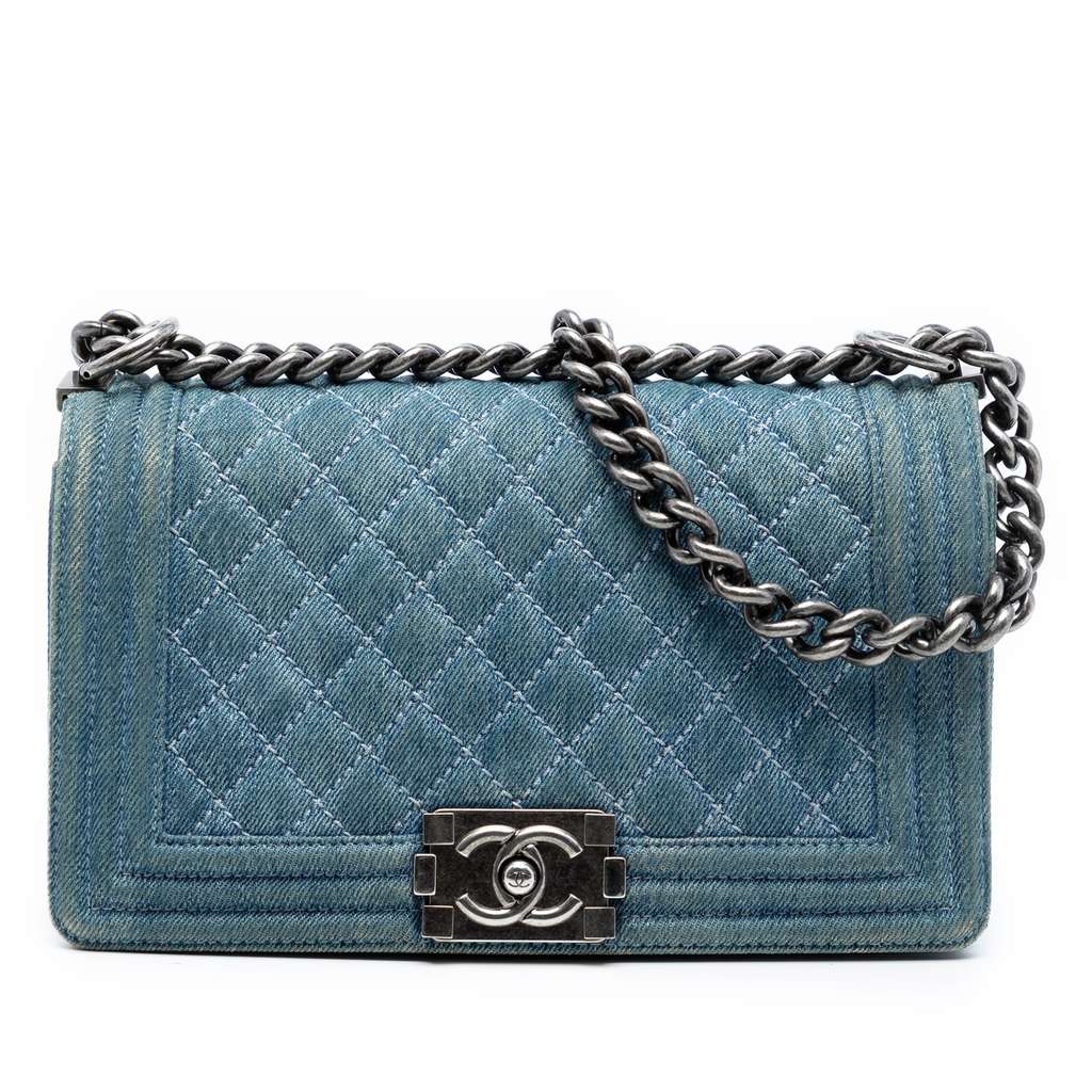 Chanel Old Medium Quilted Denim Boy Flap Blue Medium Denim
