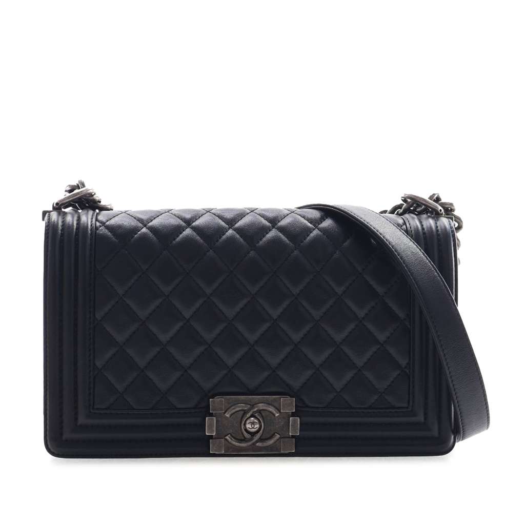 Chanel Old Medium Quilted Lambskin Boy Flap Black Medium Lea